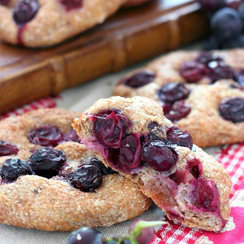 In una grande ciotola, sciogliete il lievito nell'acqua. Unite la farina e lo sciroppo d’acero e lavorate velocemente con una forchetta. Ora unite il sale. Fate riposare per 30 minuti coperto con un telo. Spolverate il piano di lavoro con farina e rovesciateci sopra l'impasto. Praticate una serie di pieghe a libro e formate una palla. Riponete una ciotola leggermente unta e sigillatela con pellicola trasparente. Riporre in frigo per 24 ore. Togliete la ciotola dal frigo e fate acclimatare l'impasto per almeno 1 ora. Nel frattempo sgranate i grappoli e lavate accuratamente gli acini. Asciugateli in un telo pulito. Dividete l'impasto in palline da 10 grammi. Stendete con le mani. Distribuite un po' d'uva su metà dei dischi, e ricoprite con i restanti dischi. Ponete altri acini anche sulla superficie cercando di farli affondare un po' nell'impasto. Fate riposare per 1 ora a temperatura ambiente. Bagnate con un po' d'acqua con uno spruzzatore, poi infornate a 200 g°. Dopo circa 10 minuti spruzzate un po' d'acqua nel forno e abbassate a 180. Cuocete per circa 20/25 minuti. 1. Sfornate e fate completamente raffreddare su una gratella.